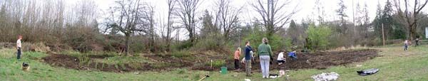 Native Plantings. North Creek and the wetlands areas are major features of the site. In these areas we are removing the invasive Reed Canary grass and other non-native invasive weeds and restoring the site with native trees and plants. The site will evolve over the years from a pasture to a wetland woods and meadow. We worked with Snohomish County on a North Creek restoration project - the engineering and planting phases of this project are complete. We are maintaining the hundreds of trees that were planted near the creek.