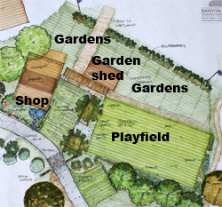 Playfields. There are two grass playfields on site.
